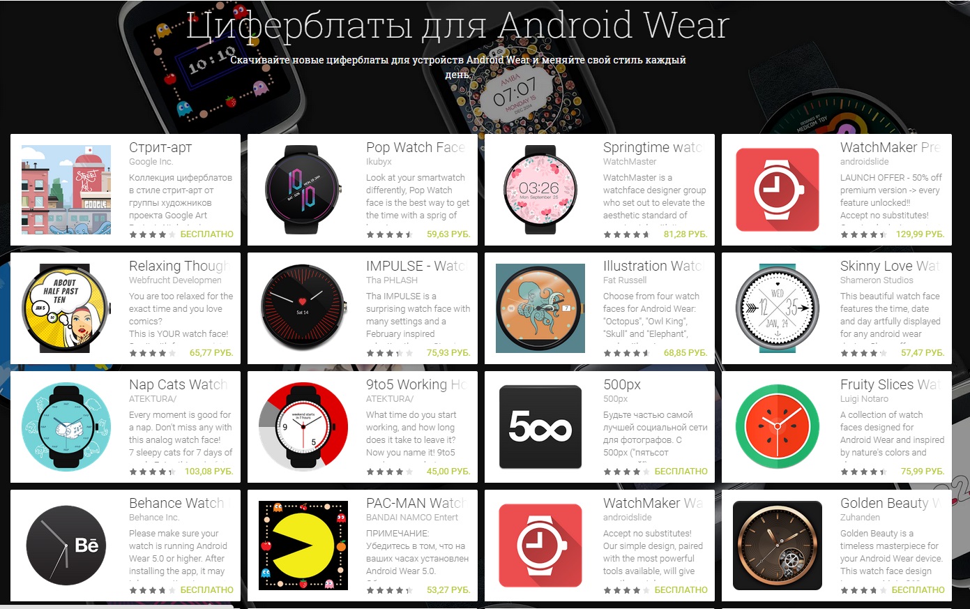 Apple Watch доступен для предварительного заказа уже завтра. Компания Google хочет использовать это для продвижения Android Wear. Google опубликовал на официальном Android блоге напоминание всем, что их умные часы имеют до 1000 различных вариантов. Шесть уникальных моделей часов и сотни стильных циферблатов. Функциональность и мода, все это сочетается Android Wear. Google также отмечает, что большинство из Android Wear устройств совместимы со стандартными 22мм ремешками и доступны в большом количестве различных стилей и цветов. Будет интересно, если вся эта шумиха вокруг Apple Watch поможет Google продвижению Android Wear. стоимость замены стекла на iphone 5